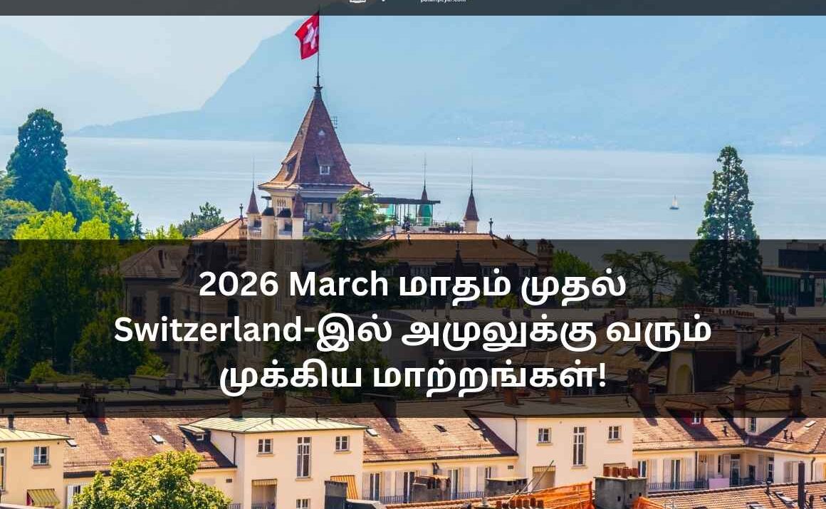 Switzerland-இல் வசிக்கும் புலம்பெயர் தமிழர்களின் அன்றாட வாழ்க்கை, நிதி நிலைமை மற்றும் சட்ட உரிமைகளில் தாக்கம் செலுத்தக்கூடிய பல முக்கிய மாற்றங்கள் இந்த 2026 March மாதம் முதல் நடைமுறைக்கு வருகின்றன. வரி தாக்கல் (Tax returns) முதல் புதிய சட்ட விதிமுறைகள் வரை நீங்கள் தெரிந்து கொள்ள வேண்டிய முக்கிய தகவல்களை இங்கே தொகுத்து வழங்குகிறோம்.
