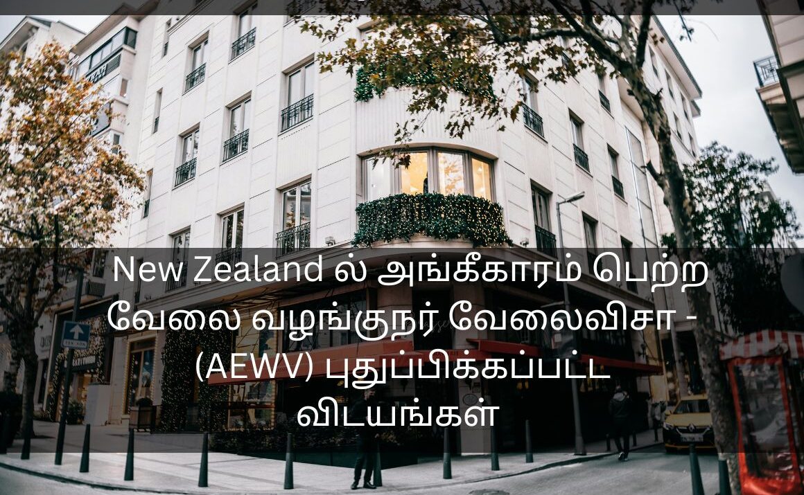 New Zealand ல் வேலை செய்ய விரும்பும் வெளிநாட்டவர்களுக்கு மிக முக்கியமான விசாக்களில் ஒன்று AEWV விசா. இந்த விசாவை பெறுபவர்கள், New Zealand ல் அங்கீகரிக்கப்பட்ட நிறுவனங்களில் அதிகபட்சம் 5 வருடங்கள் வரை வேலை செய்யலாம்.