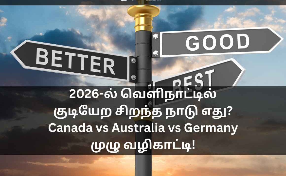 2026-ல் வெளிநாட்டில் குடியேற விரும்புவோருக்கு கனடா, ஆஸ்திரேலியா, ஜெர்மனி ஆகிய மூன்றும் வலுவான தேர்வுகள். அதிக PR வாய்ப்புகள் மற்றும் குடும்ப நன்மைகள் கனடாவில், உயர்ந்த சம்பளம் மற்றும் சிறந்த Lifestyle ஆஸ்திரேலியாவில், வேகமான விசா செயலாக்கம் மற்றும் Language Test இல்லாமல் ஆரம்பிக்கும் வாய்ப்புகள் ஜெர்மனியில் உள்ளது. உங்கள் PR இலக்கு, தொழில் திறன், சம்பளம், மொழி தேவைகள் மற்றும் வாழ்க்கைத் தரம் ஆகியவற்றை ஒப்பிட்டு சரியான நாட்டை தேர்வு செய்வதே வெற்றிகரமான குடியேற்றத்தின் முக்கியம்.